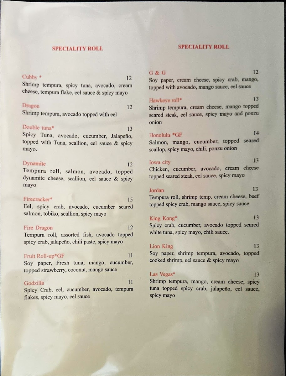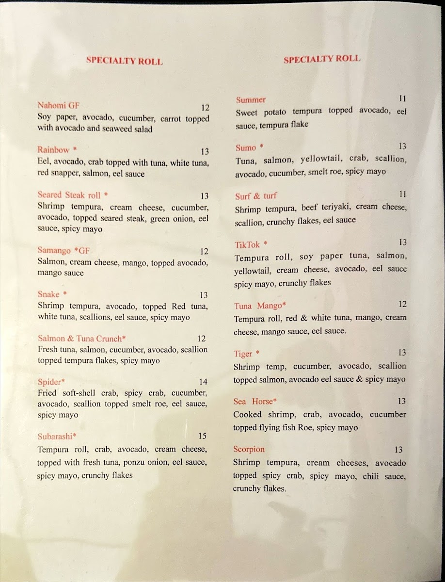 Shrimp tempura, mango, cream cheese, spicy tuna topped spicy crab mix, jalapeño, eel sauce, spicy mayo